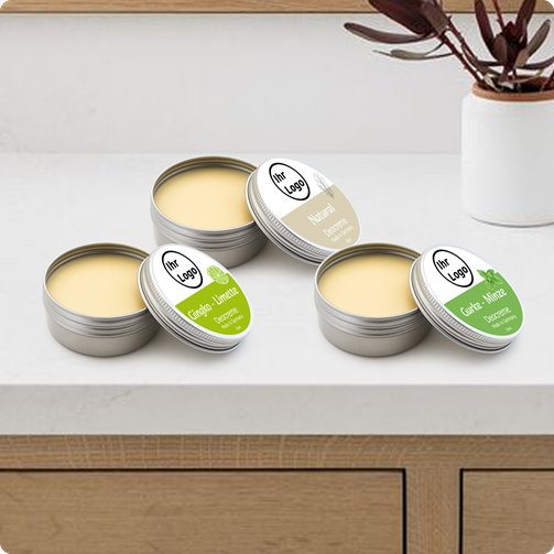 Unsere Deocreme vereint sanfte Pflege im naturnahen Stil – ganz ohne Aluminium, ganz nah an Ihrer Marke. Mit Ihrem Logo auf jeder Dose wird Frische zum täglichen Markenmoment. Verschenken Sie Duft, der bleibt.